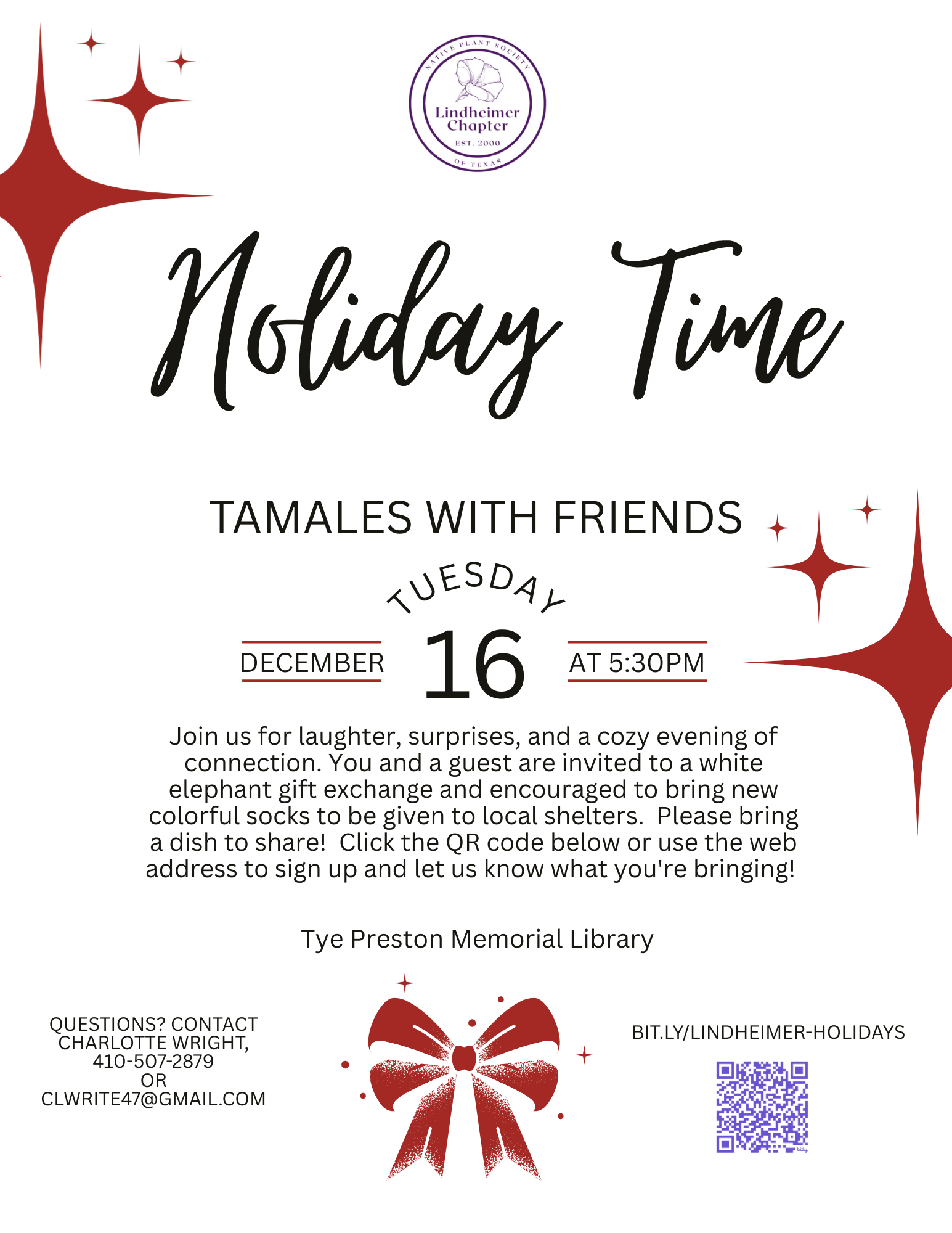 Holiday Time: Tamales with Friends December 16 at 5:30 PM. Sign-up here!